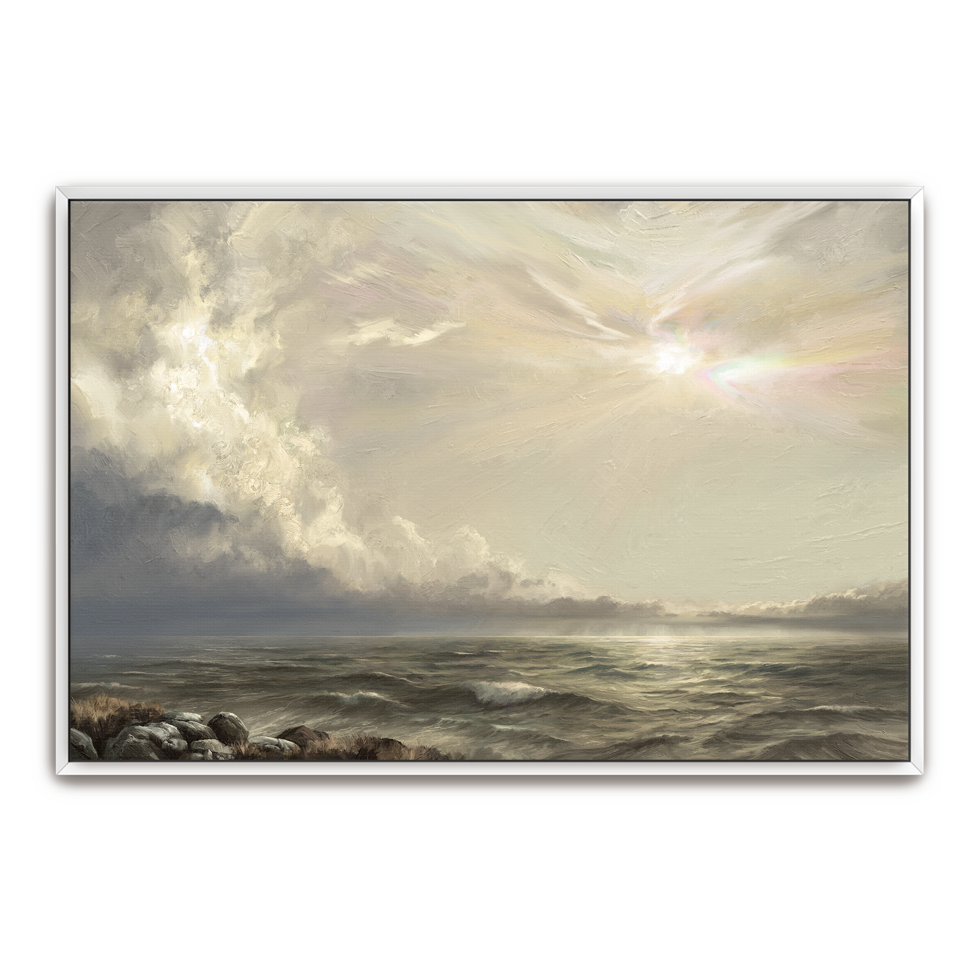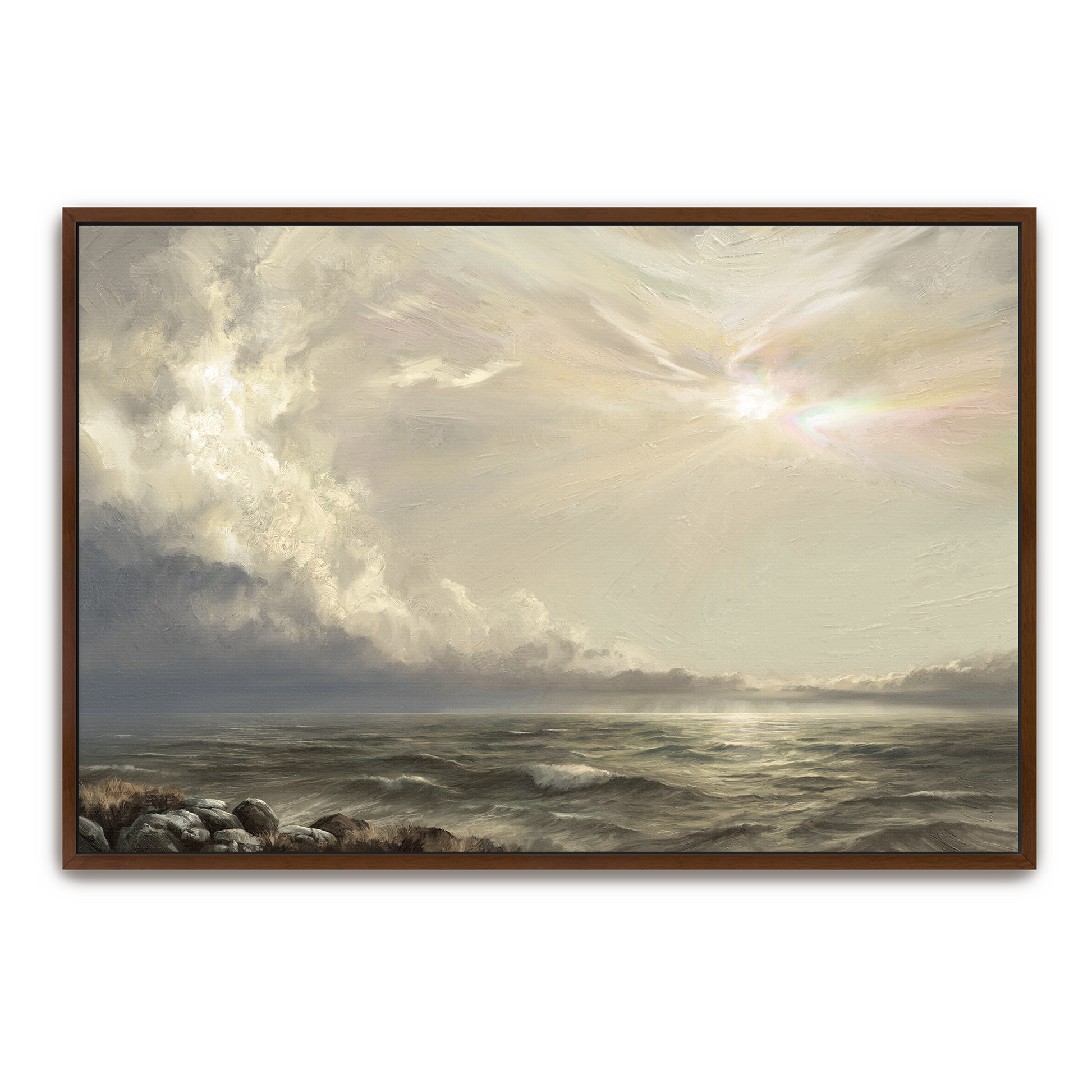 Our floating frames are made of quality wood, offering the canvas print the illusion of floating inside the frame. It comes in black, white, silver, gold, oak, natural wood, and espresso to complement any of your art & olive images.
