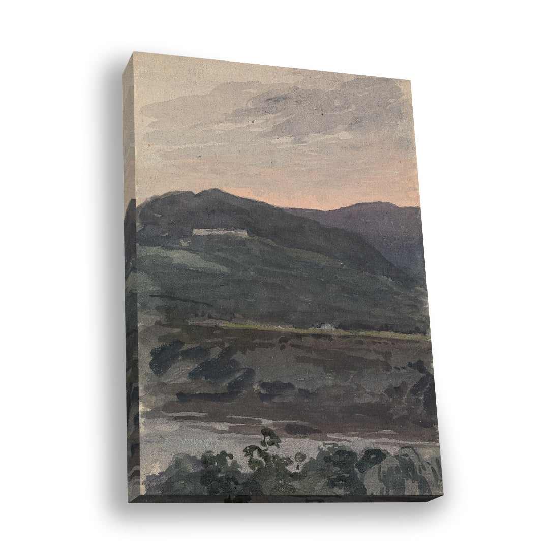 Evening settles quietly over the hills in Dusk, where soft shades of violet meet the last light of day. Subtle and reflective, this watercolor by American artist Thomas Sully captures the peaceful stillness of nightfall.