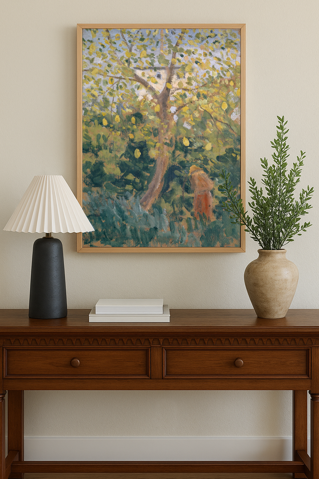Printed on premium archival fine art paper with a smooth matte finish, this option highlights every detail with timeless clarity. Finished inside a natural solid wood frame without glass, it offers a glare-free display that keeps the artwork’s texture and depth unobstructed.