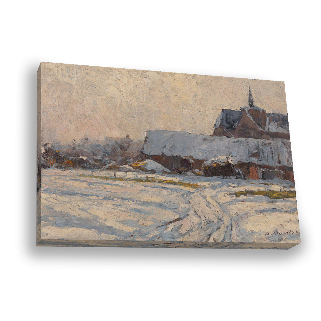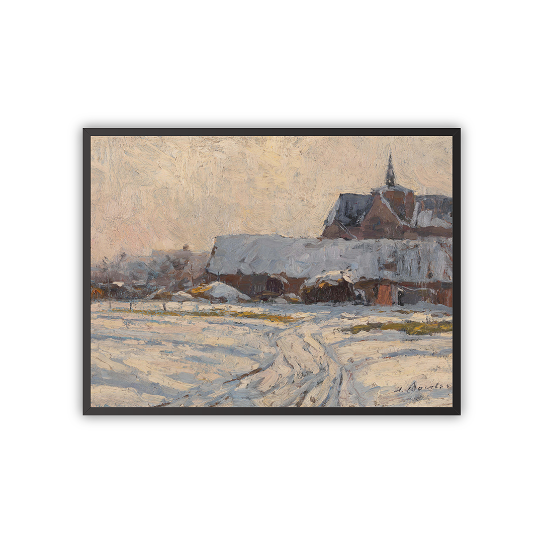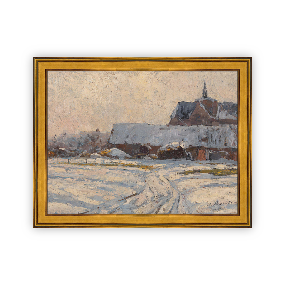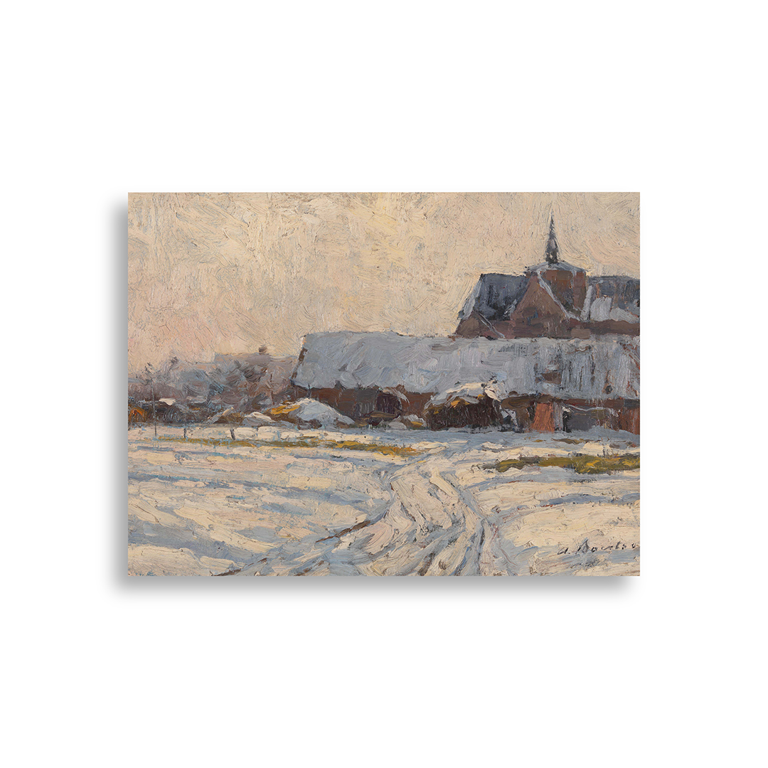 Snow settles gently over a small village in Haven, where soft light meets quiet rooftops. Painted by Belgian artist Albert Baertsoen, it reflects the calm and simplicity of winter days.