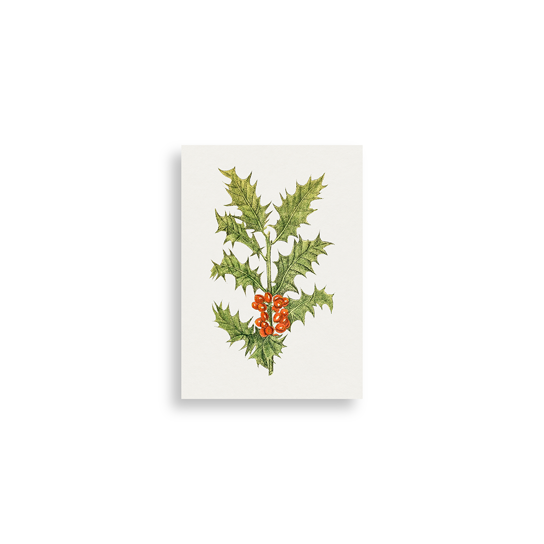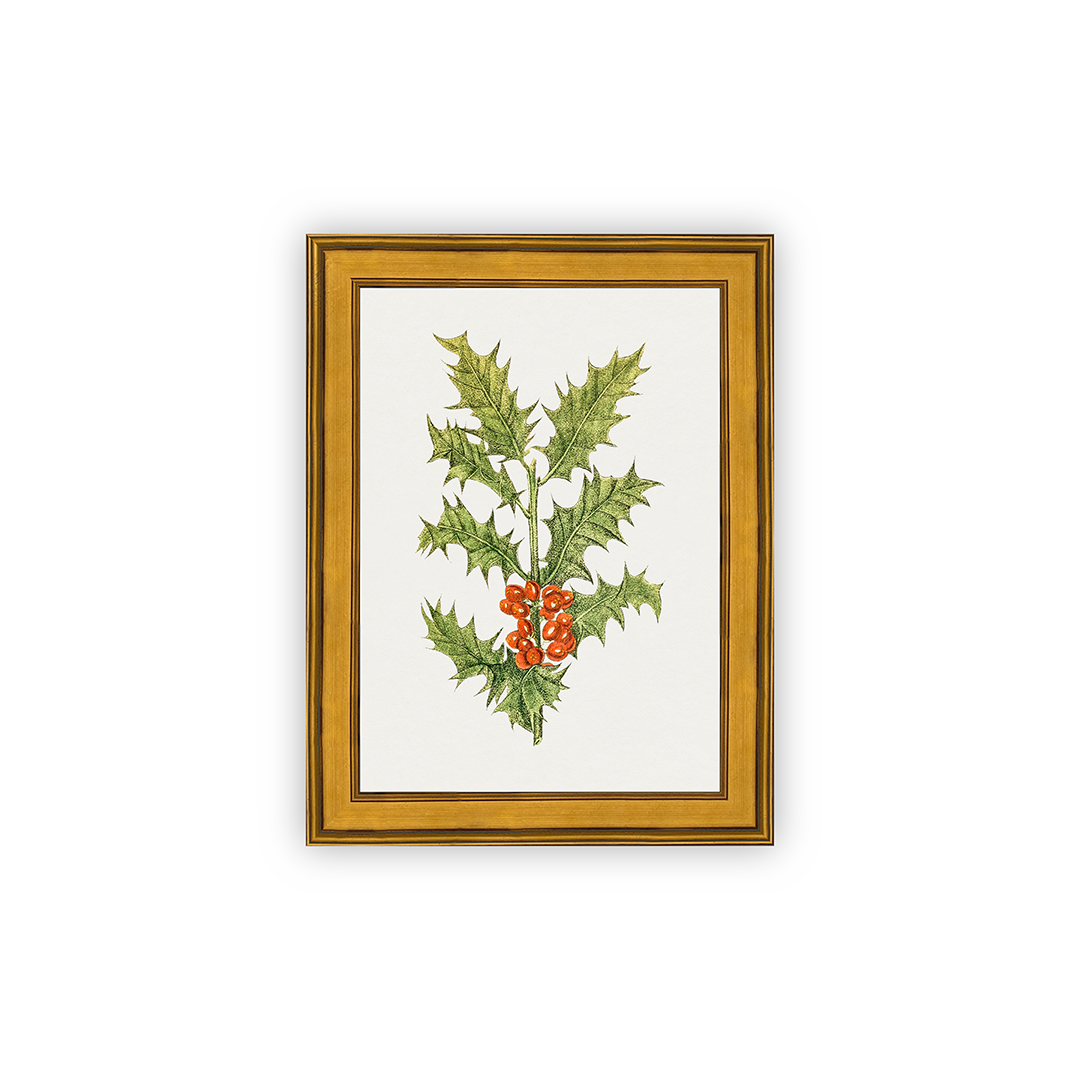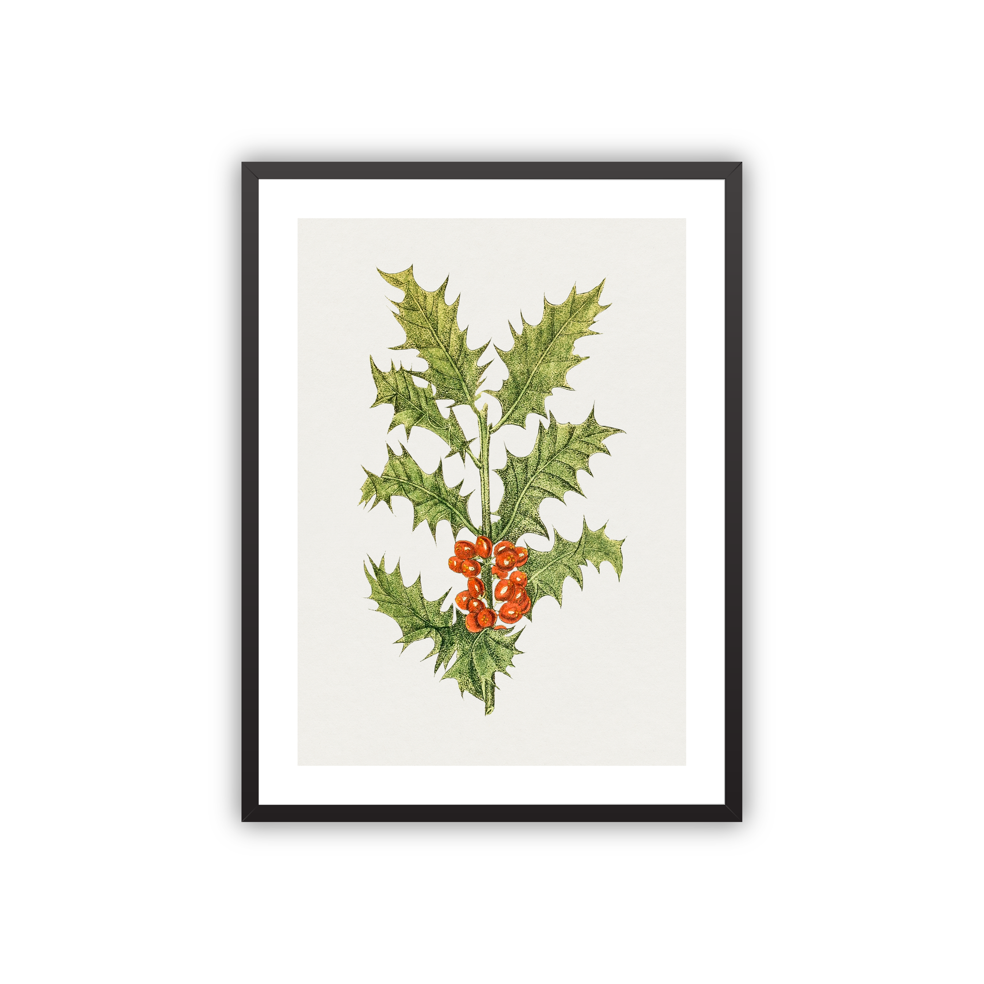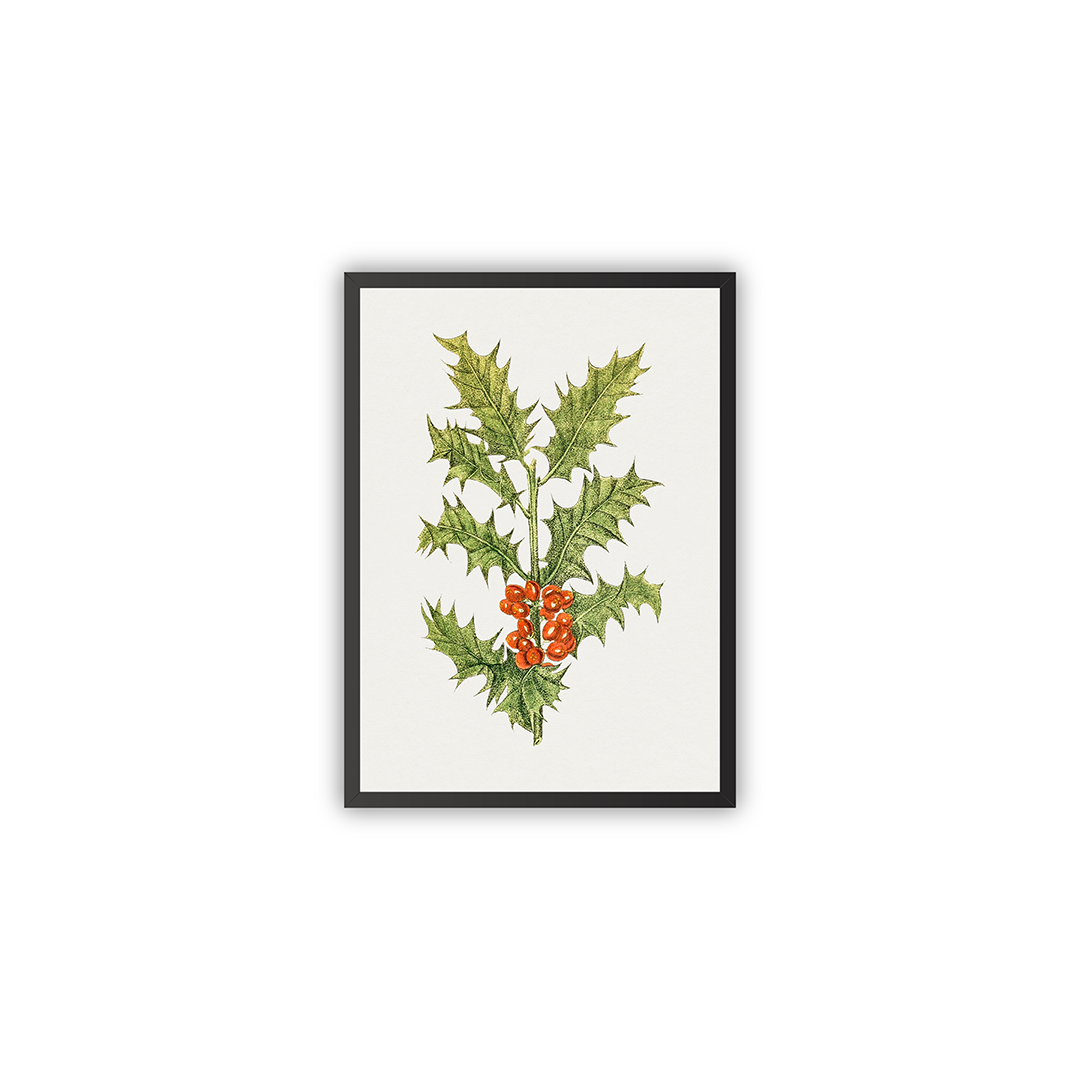 Bright red berries and sharp green leaves make Holly a timeless symbol of winter. This botanical study brings a touch of natural cheer to any space.