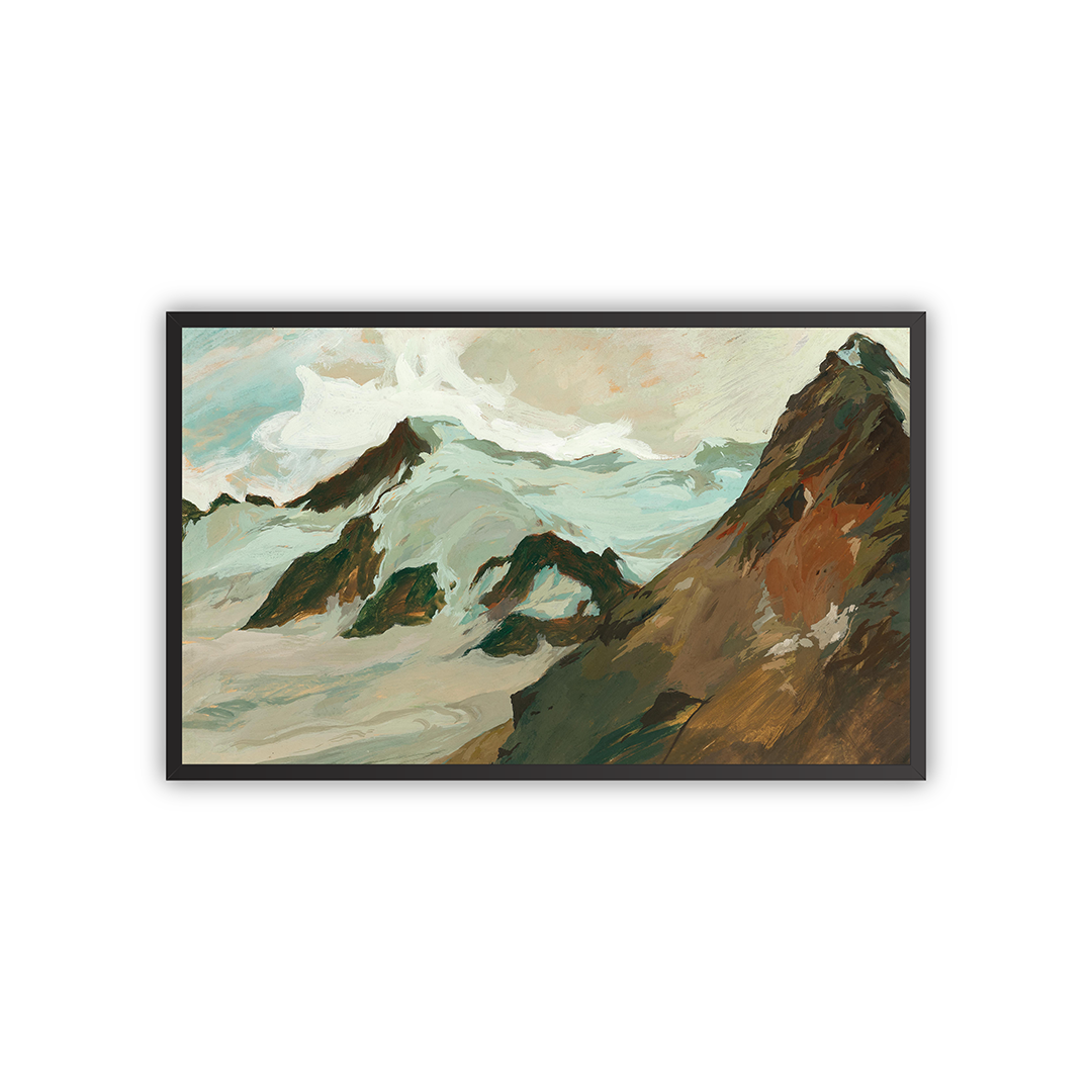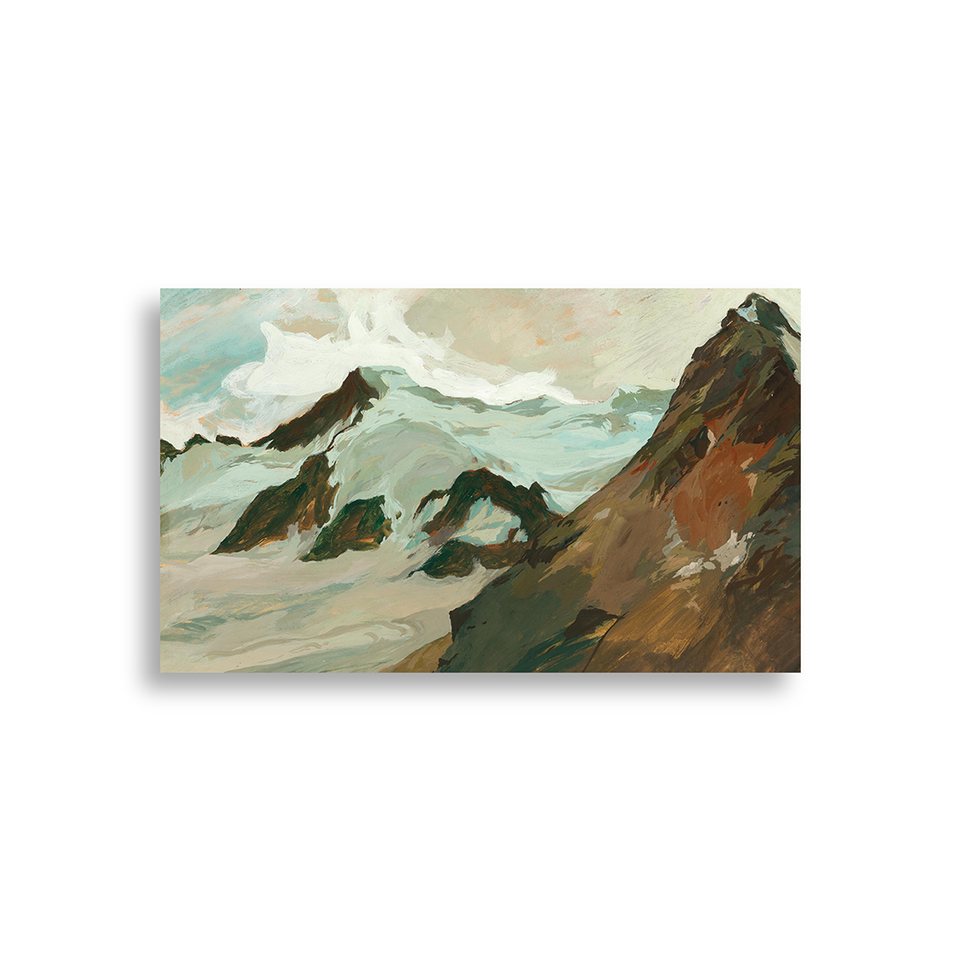 Snow-covered peaks rise against a muted sky in Silent Range, painted by Swiss artist Hugo Hodiener. The scene feels raw and expansive, a simple reflection of winter’s stillness in the mountains.